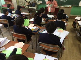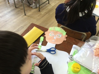 3年生の紙版画「リコーダーを吹く友達」も出来上がりつつあります。今週は、インクをつけて刷りあがるかな。