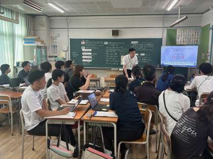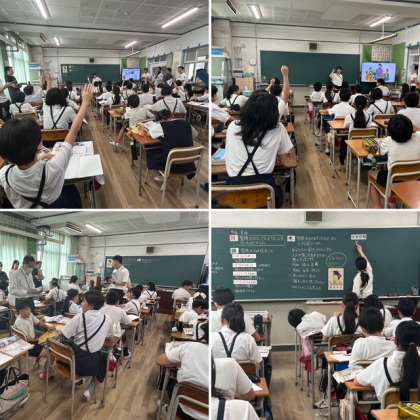 研究授業の教科は社会科で、聖徳太子はどのようなことを行ったのかという問いを立てて学習していきました。子どもたちはとても積極的に発表し、主体的に取り組んでいました。発表した子に対して同じ意見の子どもたちはグーのハンドサインをするなど、学校全体で取り組んでいるリアクションをしながら、子どもたちは楽しく学習に取り組んでいました。