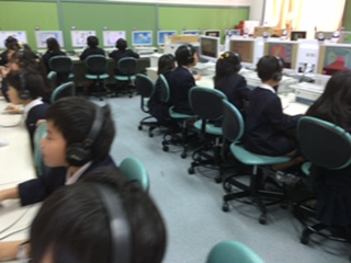 低学年の放課後ステップアップの時間です。「ランドセル」というソフトの中から自分で教材を選び、ドリル練習をしています。子どもたちの好きなゲーム形式になっていて、飽きずに取り組むことができます。