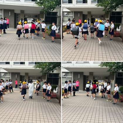 今日も運営委員会の子どもたちがあいさつ運動をがんばっています。登校してくる子どもたちも、元気にあいさつを返しています。とても暑い朝ですが校門前はさわやかな雰囲気になっています。