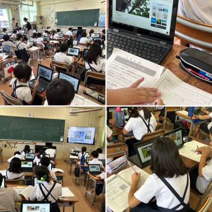 今日は子どもたちは絶滅危惧種について調べていました。タブレットで検索をして、ホッキョクグマ、ジャイアントパンダ、ラッコなどの絶滅危惧種について、どうして絶滅危惧種になっているのかという原因をまとめていました。