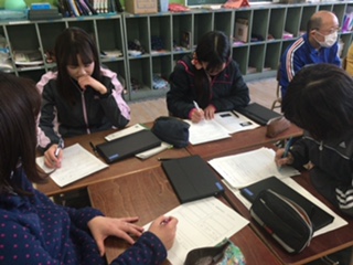 最初から入っている「ワンノート」というソフトを使ってみました。写真を取り込んで、文字や図形を入れたり、キーボードが苦手な子どもにもすぐに使えるようにタッチペンで、手書きで文字を入れたり、楽しみながら行いました。
