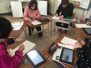 先週、タブレットパソコン40台が、ようやく学校に入りました。早速本校のT先生を講師に、研修会を開きました。