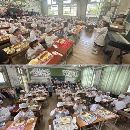 プールに入った1年生、きっとお腹も空いたことでしょう。たくさん食べてくださいね。