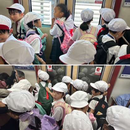 各学年、元気に出発して行きました。1年生も春の遠足の経験があるので、スムーズに大阪メトロに乗って移動できています。