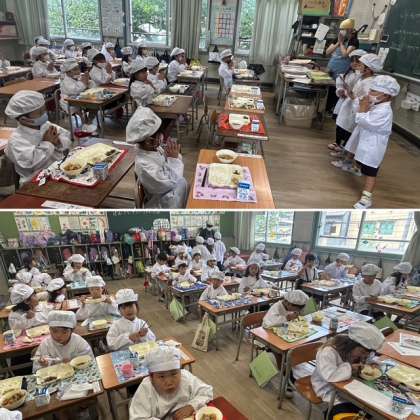午前中にプールに入った1年生はお腹が空いていたのか、給食をたくさん食べていました。とても暑いけど、昼からもがんばろう!