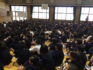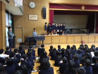 昨日から、「歩こうよ週間」がスタートしました。「廊下、階段などを正しく安全に歩きましょう。」と、児童会の子どもたちがビデオを作り、全校朝会で発表しました。右側通行、曲がり角での飛び出し、階段の降り方など、気をつけないと大変危険であることを分かりやすく説明し、正しく歩きましょうと呼びかけました。