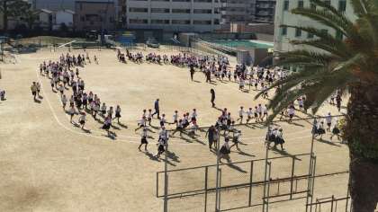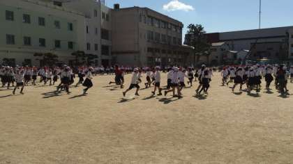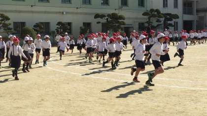 今週と来週は、2時間目の後の15分休みを「かけあしタイム」にしています。全学年で走って、健康で丈夫な体をつくり、体力向上を図ります。