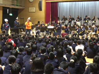 大きな楽器やかわいらしい楽器など音色やかたちの違いなどもよく分かりました。西三国小学校の校歌も演奏してくださり、子ども達も大きな声で歌いました。