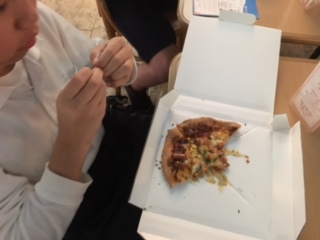 あかふじ米、ピザ作り体験をし、味わっています!おいし〜い!!^_^