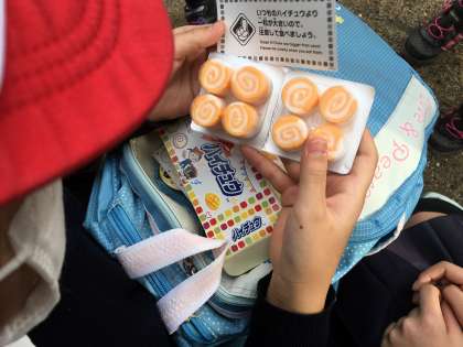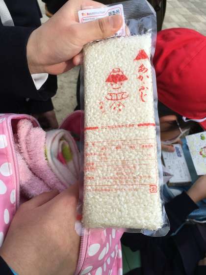 職業体験をしてできあがったものをいただきました。声優になってアニメの吹き替えをしたCD、あかふじ米の精米、ハイチュウなどです。