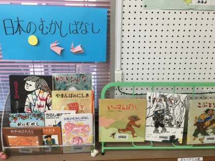 月替わりの「おすすめの本」コーナーは、春の本が並んでいます。「昔ばなし」コーナーもできました。本棚も作家名のあいうえお順に本が並んでいます。探している本が見つけやすくなっています。