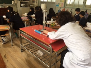 薬剤師のT先生に、教室の中の二酸化炭素の量や、湿度などを調べていただきました。温度も二酸化炭素の量も特に問題点はないとのことでした。