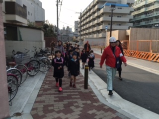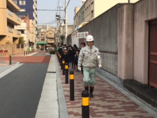 27日の土曜日、西三国連合振興町会と合同で防災訓練を行いました。各町会ごとに集まり、学校まで避難。