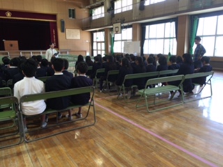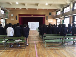 呼びかけと、歌の練習をしました。大きな声で、体育館に響き渡る声が出ています。