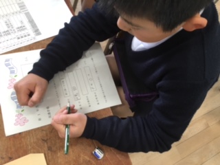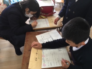 4月からは、新1年生も一緒に集団登校をします。集合場所や時刻などを手紙に書いて、帰りに渡しに行きます。