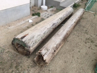 2人の先生か、耕して塊を柔らかくしてくれています。撤去した丸太は、中が腐っていました。
