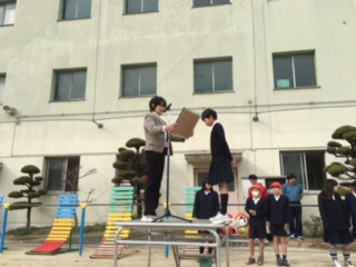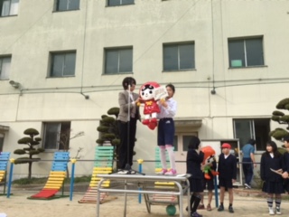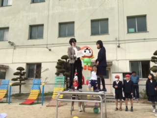 法務局から、「人権の花」の取り組みに対して、感謝状をいただいたので、児童会の代表に渡しました。友達を大切にして、思いやりや、感謝の気持ち、生命を大切にする心などを育んでいって欲しいとの願いも込められた感謝状です。