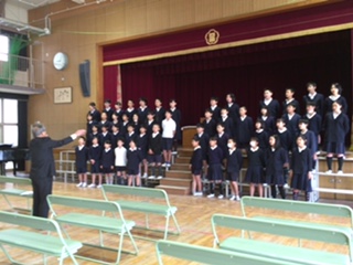 今日もまたY先生に歌のご指導をお願いしました。6年生は、先月のファイナルコンサートの時も指導していただいたことできれいな声が出るようになってきました。卒業式で歌う歌は、また別の歌なので、曲想や歌詞の意味などていねいに指導していただきました。短い時間でみるみる子どもの声が変わるのが分かります。子どもに取っても、若い先生にとってもとてもありがたいうれしい時間となりました。ありがとうございました。