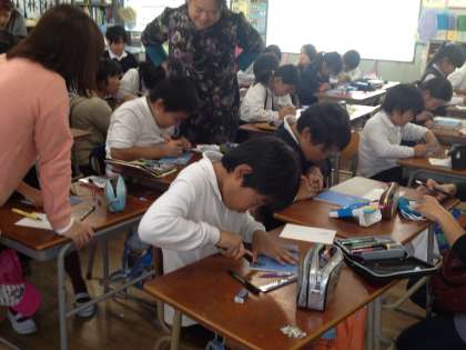 6時間目、図工の学習で「彫刻刀の使い方」を学習しました。平刀、丸刀、切り出し、三角刀など、それぞれの特徴を生かして、彫る練習をしました。最後は、自分の名前を彫って、すてきなはんこが出来あがりました!