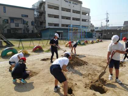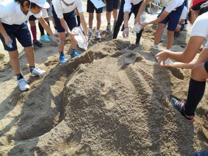 土がどんどんけずられていく様子から、「もし、これが本当の川だったら…。」と実生活におきかえ考察している児童も中にはいました。
