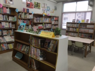 書架やカウンターを移動し、配置がえをしました。入室すると、おすすめの本が、目に飛び込んできます!