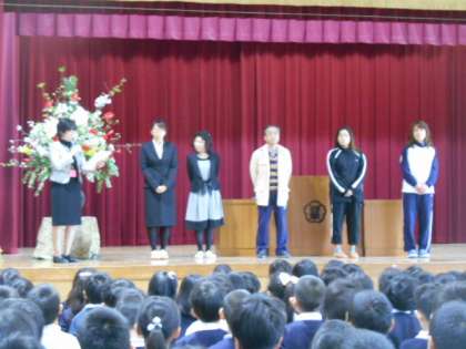 8人の教職員の方が他校に転勤され寂しくなりましたが、また新しく5名の方を迎えて今日からスタートです。お一人ずつ自己紹介をしていただきました。どうぞよろしくお願いします!