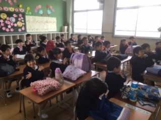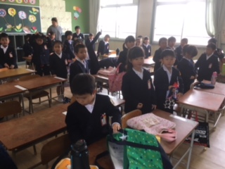 1年生の1日目は、あっという間に過ぎてしまいます。持ち物をロッカーや机の中にしまったり、学校からの手紙をファイルに入れたり、家から持ってきたプリントを出したりなどなど。1時間くらいすぐ経ってしまいます。最初が大切なので、ていねいに指示をしてゆっくりと待っています。帰るとき「楽しかったよ」という声が聞こえてきたのでホッとしています。