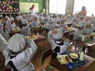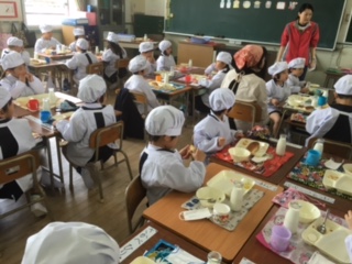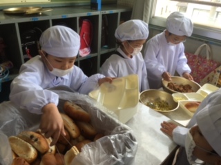 当番も上手にできました!おかわり欲しい人!はーい!!、しっかり自分の食べられる量を決めて食べました。今日のメニューで人気だったのは、スープと豚肉のソテーでした!「おいしかった^_^」と満足そうな顔、顔。明日も楽しみですね。