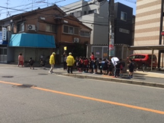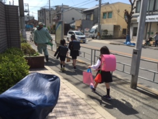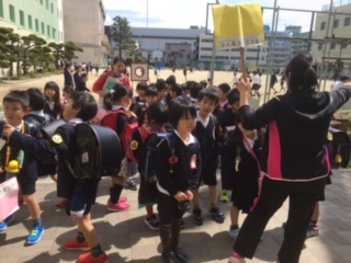 町会方面ごとに並んで「さようなら!」見守り隊の方方も送ってくださいます。明日も元気で登校してね!待っています^_^