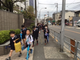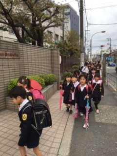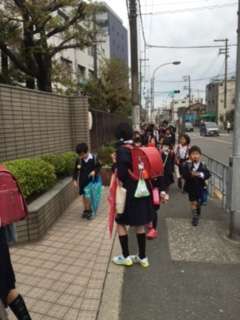 集団登校にも少しずつ慣れてきました。下の学年を気づかう班長さん。うれしいですね。