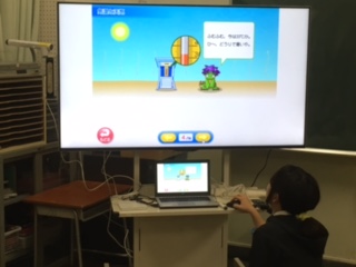 教室のテレビを39インチから60インチの大型にかえました。後ろからでも見やすくなりました。視聴覚担当のT先生が、デジタル教科書や「ランドセル」という学習ソフトを春休みにインストールしてくれたので、すぐに使えて便利です。子どもたちの学習が楽しく、確かなものになることを願って活用していきます。