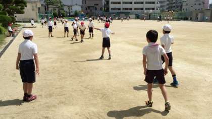 今日は、よく晴れて汗ばむ天気でした。休み時間には、たくさんの子どもたちが運動場に出て遊んでいました。