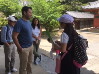 6年生が奈良へ遠足に行きました。東大寺見学の後、俊乗堂、二月堂などをグループ毎にオリエンテーリング。ポイントを回りながら、出会った外国の人にインタビューをするというミッションもありました。英語学習で覚えた言い回しに加え、にこやかに、失礼のないようになどのマナーもしっかりおさえてインタビューし、サインもいただきました。中でも感心したのは、たくさんのグループが同じ方に集中してインタビューしそうになった時の事。「同じことを何べんも聞かれたら迷惑やん、やめとこう!」といった発言が出たのです。さすがですね。とても暑く、お茶もすっかりなくなりましたが、ステキな思い出ができた1日でした!インタビューに答えてくださった皆様、ありがとうございました。