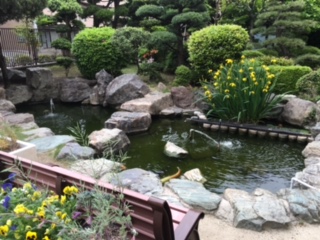 玄関の池に黄色のショウブの花がたくさん咲きました!