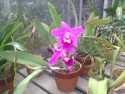 春、PTA活動で温室内のランの株分けをPTA歴代会長の三室さんに教えていただきました。きれいなカトレアが今年も花を咲かせました。大事に手をかけて育てると、素敵な花が咲くのだということを改めて感じ、うれしくなりました。
