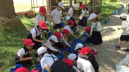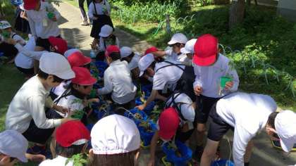 トマトの苗を植えました。植木鉢には昆虫やナメクジがいたり、雑草の根が広がっていたり、いろんな発見がありました。