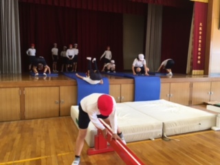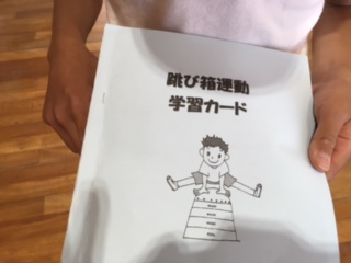 跳び箱の技を高めるため、基本の動きを練習しています。「跳び箱練習カード」