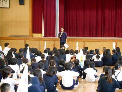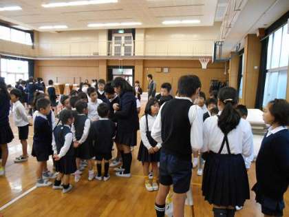今日の集会活動は、講堂で、明日(11月8日)の全校遠足に向けた最後の相談をしました。リーダーを中心に話し合い、みんなで協力して楽しむことを確認し合いました。明日のお天気は、晴れの予報です。きっと楽しい活動ができることでしょう。今日の放課後は、ゆっくりと過ごし、明日の全校遠足に備えてください。保護者の皆様、よろしくお願いします。