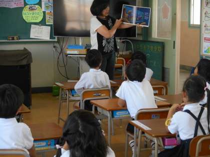 今日から朝のお話会がスタートしました。月2回、水曜日低学年と高学年に分けて図書ボランティア「ほうせんか」の皆さんが交代で読みきかせをしてくださいます。
