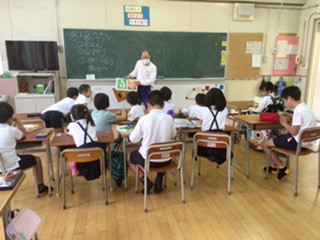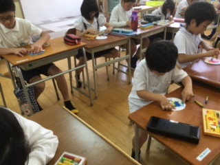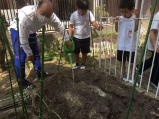 月曜日の2時間目は、なかよし学級とみんなが集まる時間です。絵本を読んでもらった後、学習園に行き水やりを。この間蒔いたトウモロコシなどの芽が出ています。ふたたび教室に戻り、カタツムリの殻に色を塗って6月の掲示物を作りました。のびのびと、自分らしさを発揮できる時間であり、上の学年の子どもは、低学年の世話もやってリーダー性もいろいろな場面で発揮できています。
