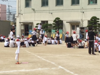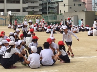 たてわり班でハンカチ落としをしました。ゲームがまだよくわからない子にも優しい言葉をかけている上級生もいました。