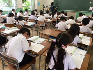 単元が終わってまとめの問題を、まずは自力で、その後答え合せをしてまちがったところ、あやふやなところはもう一度確かめています。宿題以外の家庭学習などでも復習するとより確かなものになりますね。