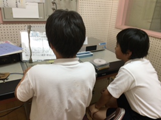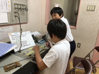 放送委員会児童が、給食の献立や掃除のお知らせなどを交代で行っています。