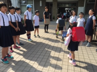 児童会の子どもたちが、みんなのあいさつの声が大きくなるまで、毎日朝のあいさつ運動を続けると話し合い、今日月曜日から校門で声をかけています。PTAのお母さんや地域の見守り隊の方も登下校を見守りながら、「あいさつをしてくれるとうれしいわぁ」と話されています。