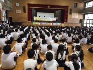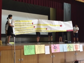 今朝の自動朝会は、歯科校医のO先生、PTAの保健体育委員会のお母さん達も一緒に参加して「歯と口の衛生」について学習しました。健康美化委員会の児童が先日の歯科検診の結果をもとに虫歯の数などを学年ごとにまとめ、気づいたことを発表したりクイズにしたりしました。