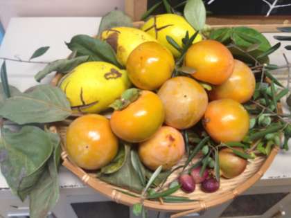 西三国小学校には、たくさん実のなる木があります。今学習園や中庭には、こんな実ができています。何の実か分かりますか?