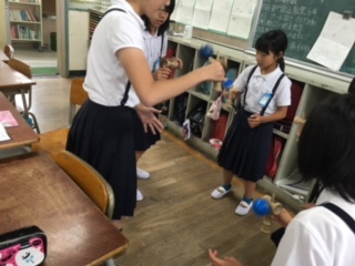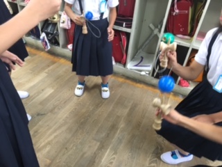 雨の1日、休み時間、6年生の教室でけん玉が流行っているそうですよ!