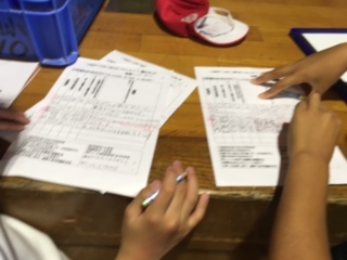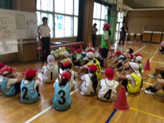 練習試合の後、チームや自分のめあてが達成できたかふりかえりました。最後のゲーム大会に向けて、パスや防御の仕方などよりよい動きをめざしてがんばります。
