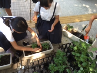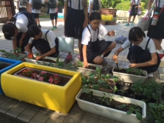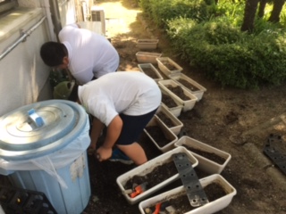 玄関のプランターに、種から育てたマリーゴールドやダリアの植え替えをしてくれました。咲くのが楽しみです!